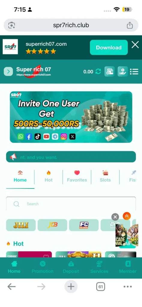 Players can earn money not only by playing games but also through referrals, daily bonuses, and first deposit rewards. You can easily share your referral link on WhatsApp, Telegram, Instagram, Messenger, and other social media platforms.